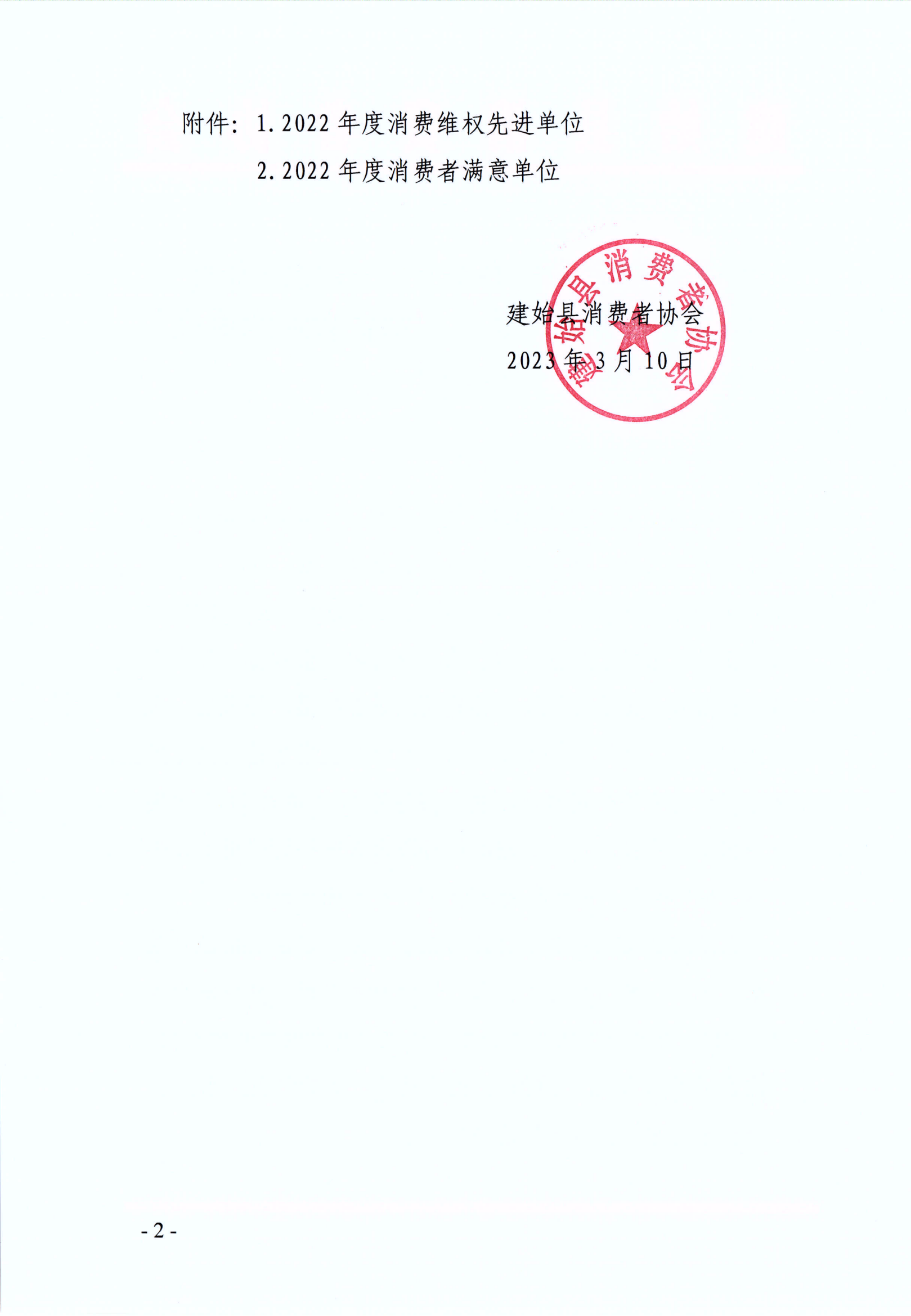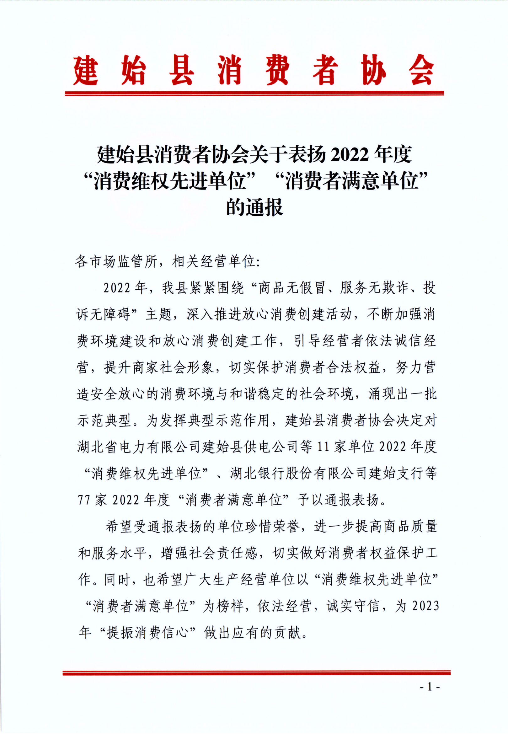 熱烈慶祝我單位被評為2022年度消費者滿意單位