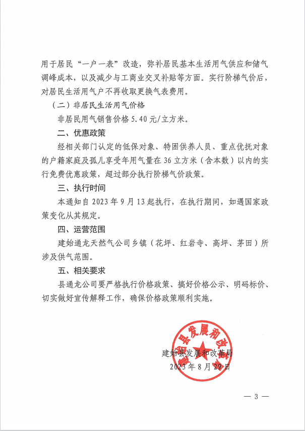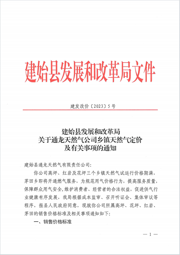 建始縣發(fā)展和改革局關(guān)于通龍?zhí)烊粴夤距l(xiāng)鎮(zhèn)天然氣定價及有關(guān)事項的通知