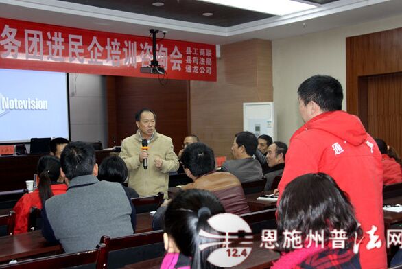 11月26日晚,建始縣商會(huì)律師服務(wù)團(tuán)走進(jìn)通龍?zhí)烊粴夤,為企業(yè)管理人員和員工70多人進(jìn)行法律培訓(xùn)咨詢活動(dòng)。這是該縣工商聯(lián)與縣司法局成立律師服務(wù)團(tuán)以來首次走進(jìn)民營企業(yè)進(jìn)行法律知識(shí)培訓(xùn)咨詢,互動(dòng)環(huán)節(jié),律師工面對(duì)面地解疑釋惑,讓員工在潛移默化中受教育。 |